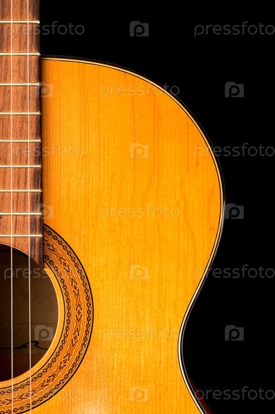 Старая классическая гитара на черном фоне