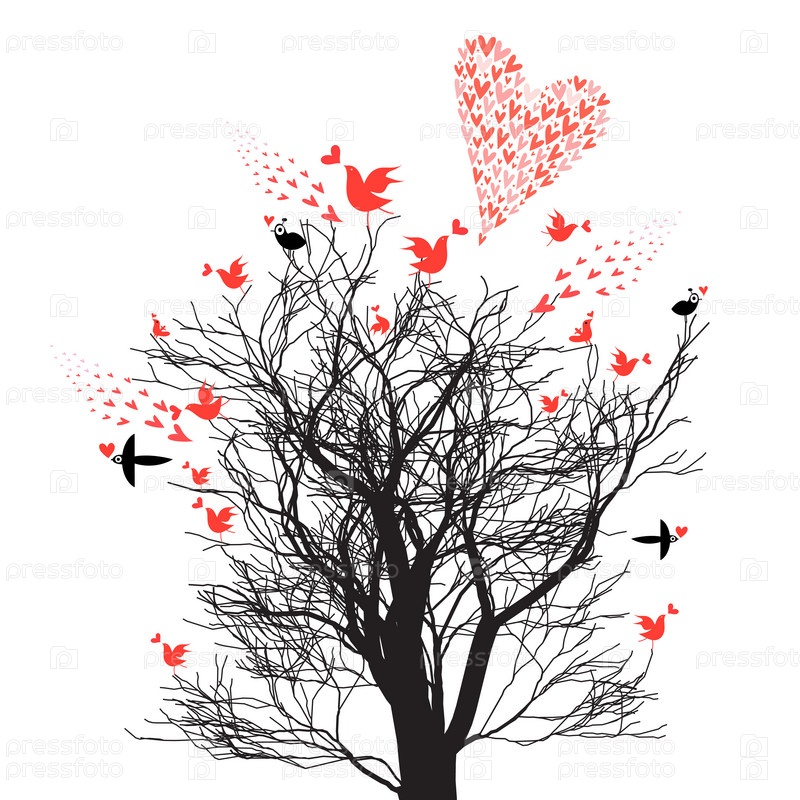 Дерево с влюбленными птицами