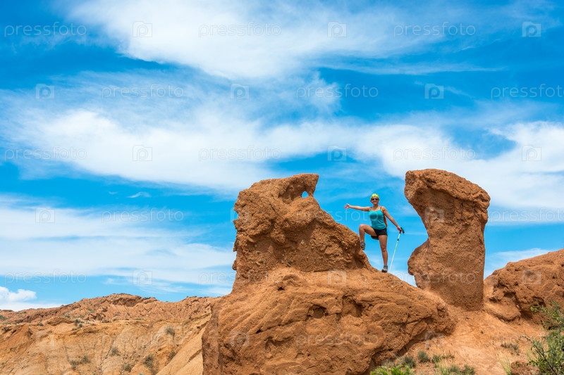 Красивая девушка в оранжевых скалах