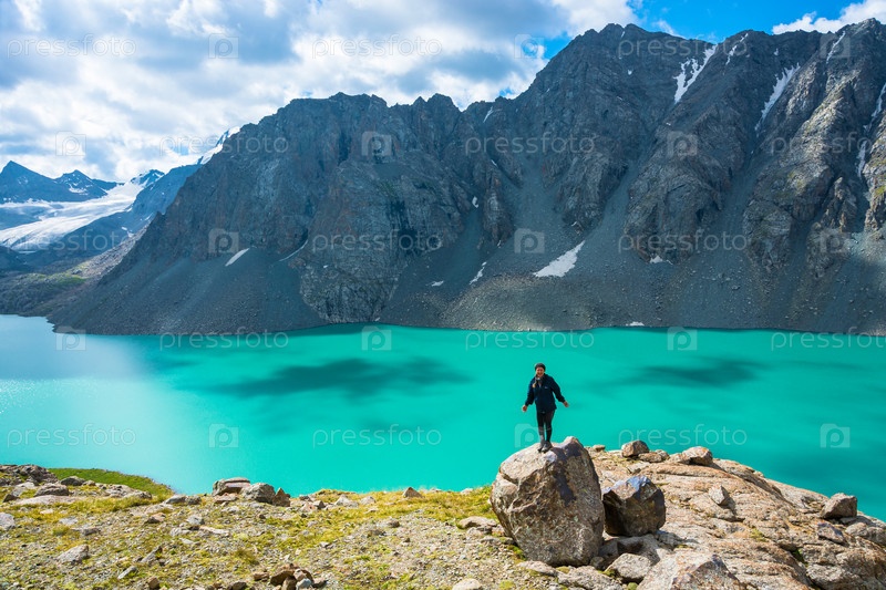 Девушка на фоне горного озера