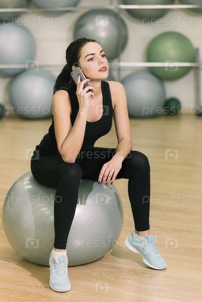 Девушка после тренировки разговаривает по телефону