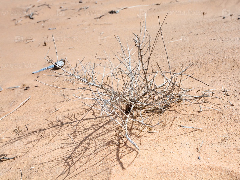 Высушенный кустарник в песке пустыни Вади Рам
