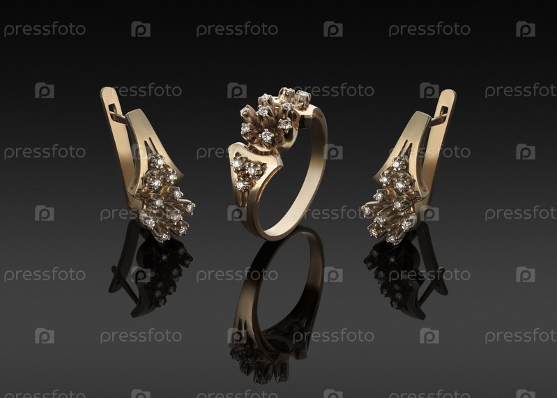 Золотое кольцо и серьги с бриллиантами
