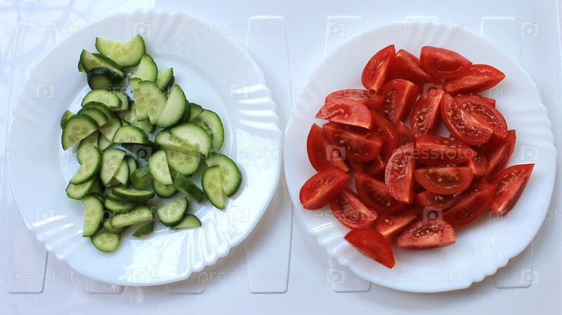 Томаты и огурцы нарезанные для салата