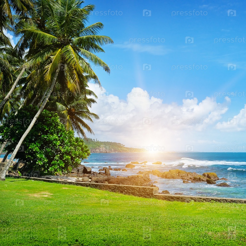 Океан и тропические пальмы на берегу