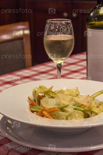 Итальянская паста и бокал вина