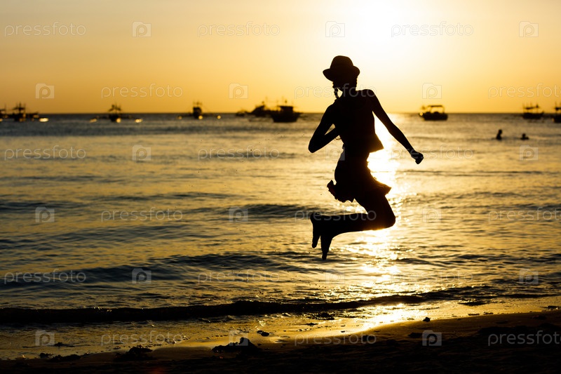 Девушка на пляже на закате