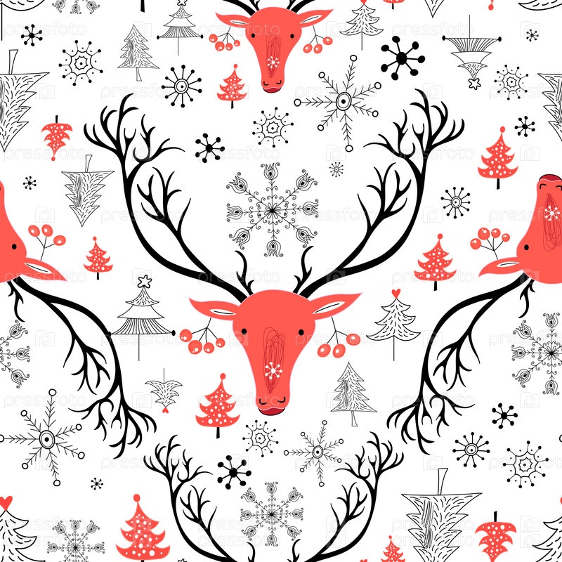 Бесшовный новогодний фон с красными портретами оленей
