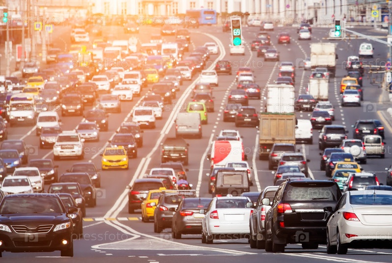 Перегруженная дорога со множеством автомобилей