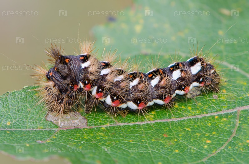 Волосатая гусеница с красными и белыми точками
