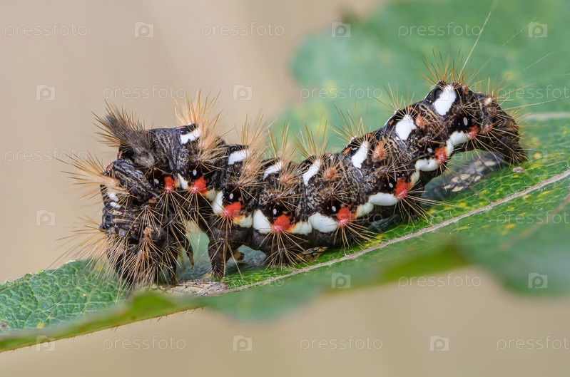 Волосатая гусеница с красными и белыми точками