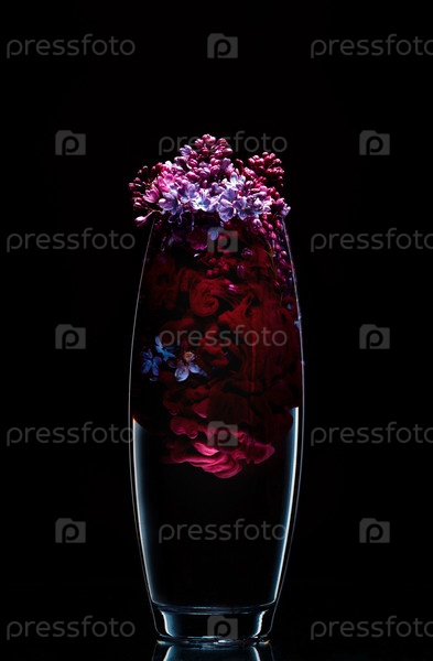 Красивая сирень в красной воде на черном фоне
