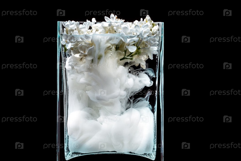 Белая сирень с краской в воде