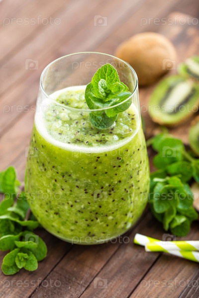 Свежий зеленый смузи с киви и мятой