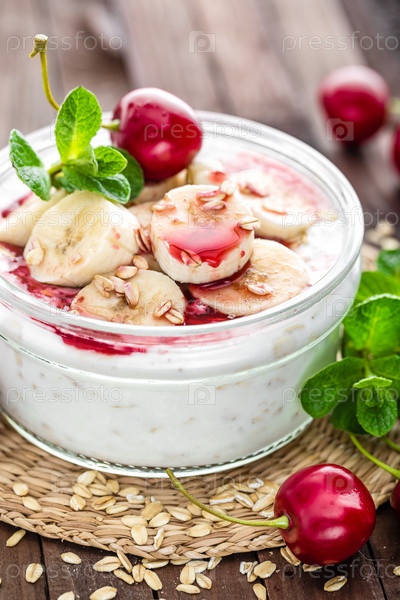 Свежий йогурт с вишней и бананом