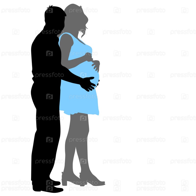 Силуэт счастливая беременная женщина и ее муж
