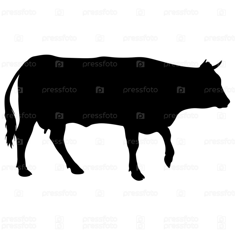 Черный силуэт дойной коровы на белом фоне