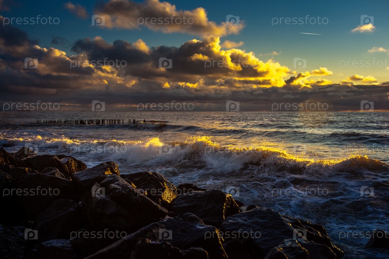 Красочный закат в Черном море, Поти, Грузия