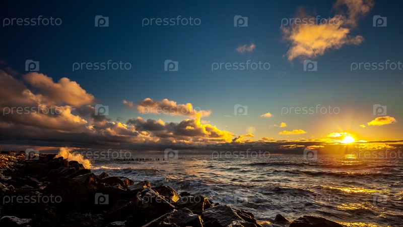 Красочный закат в Черном море, Поти, Грузия