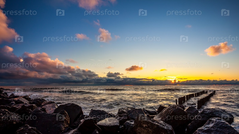 Красочный закат в Черном море, Поти, Грузия