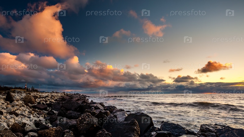 Красочный закат в Черном море, Поти, Грузия