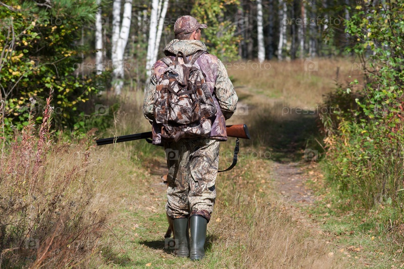 Охотник в осеннем лесу