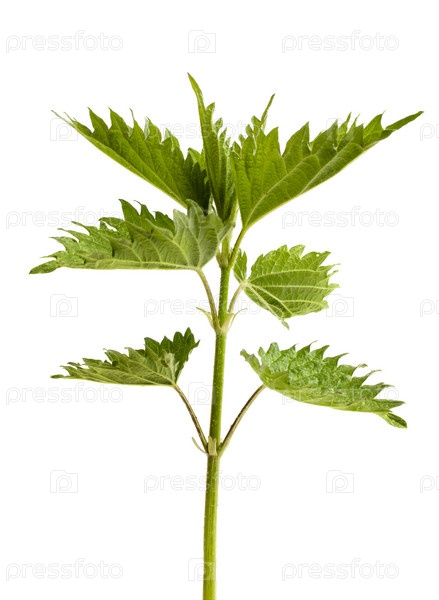 Зеленые листья крапивы на белом фоне