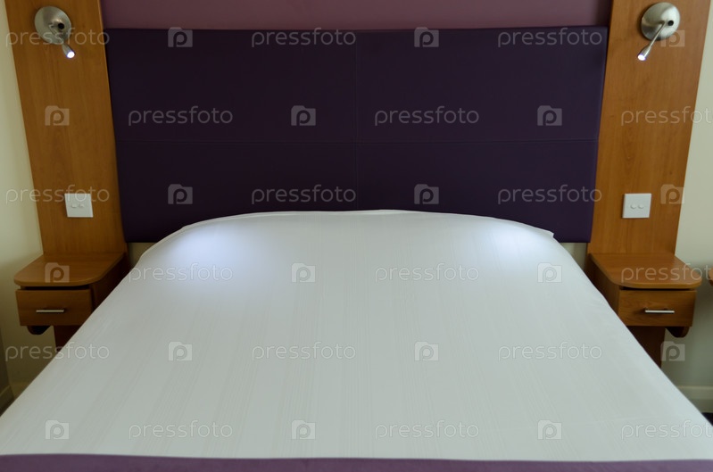Двуспальная кровать в гостинице с двумя белыми подушками
