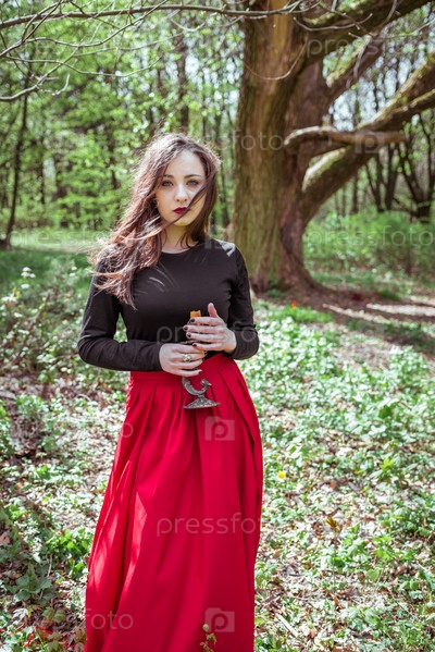 Ведьма в лесу со свечой