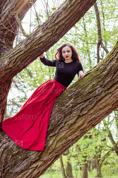 Красивая женщина на дереве