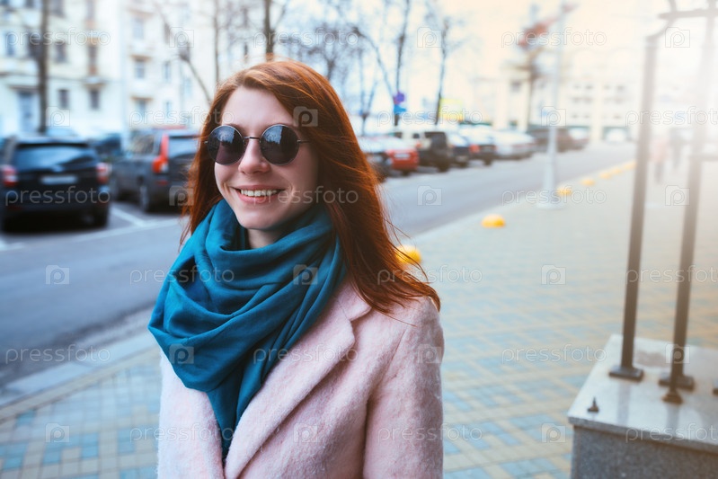Рыжеволосая красивая девушка на улице