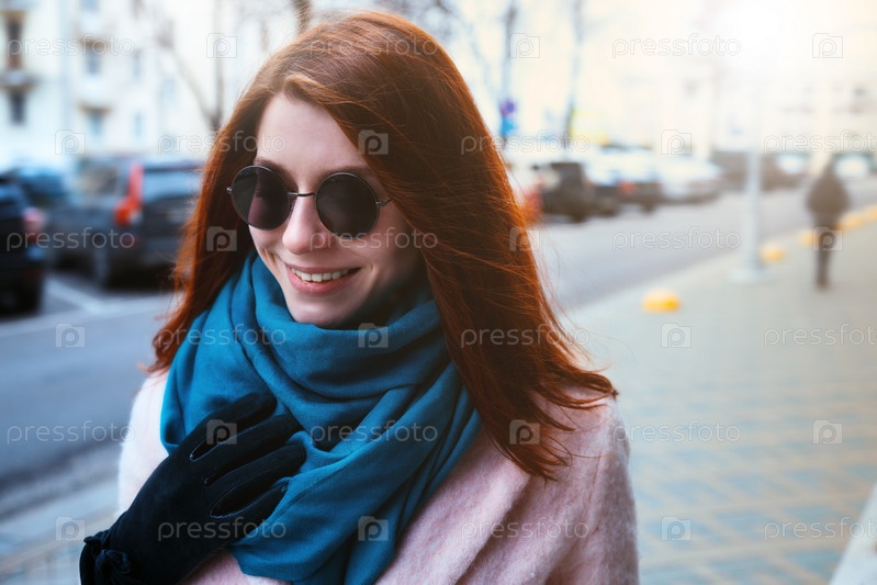 Рыжеволосая красивая девушка на улице