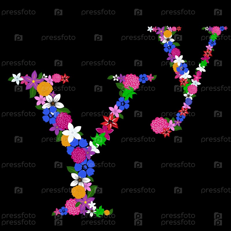 Цветочный алфавит для использования в печати и веб-дизайне. Векторная иллюстрация