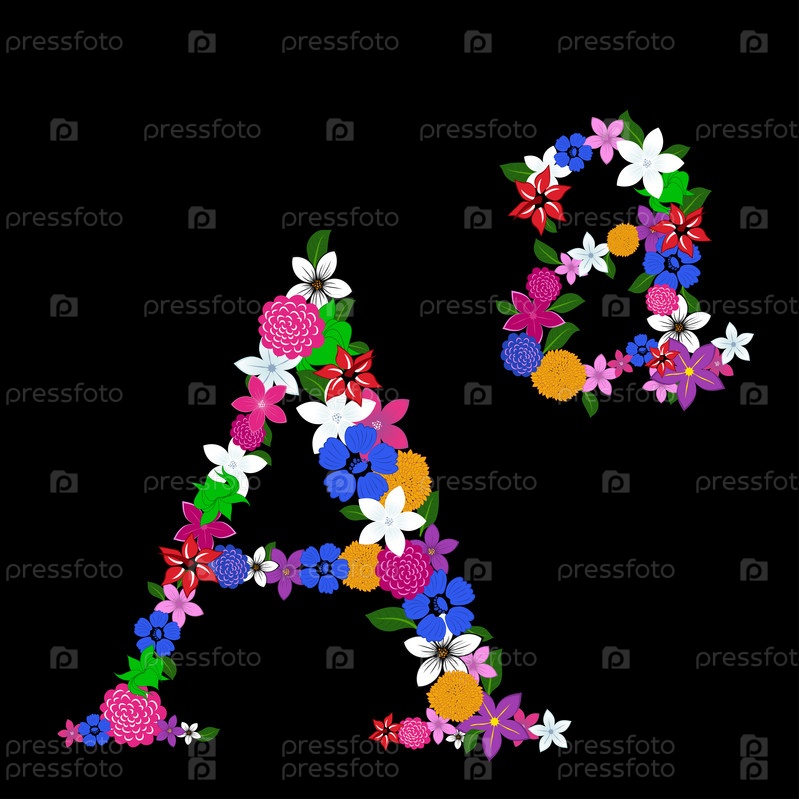 Цветочный алфавит для использования в печати и веб-дизайне. Векторная иллюстрация