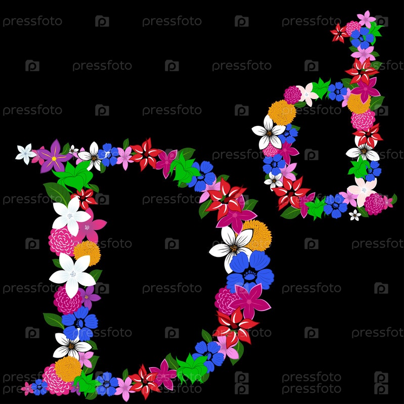 Цветочный алфавит для использования в печати и веб-дизайне. Векторная иллюстрация