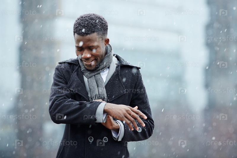 Счастливый мужчина и падающий снег