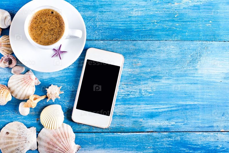 Смартфон и чашечка кофе