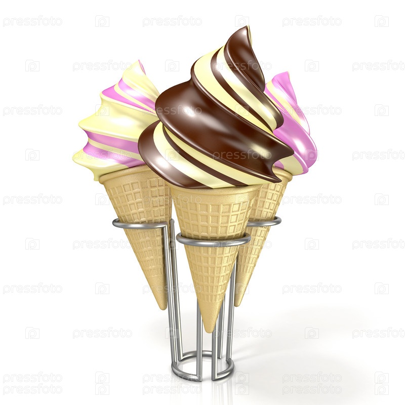 Различные виды мороженого в вафлях. 3D