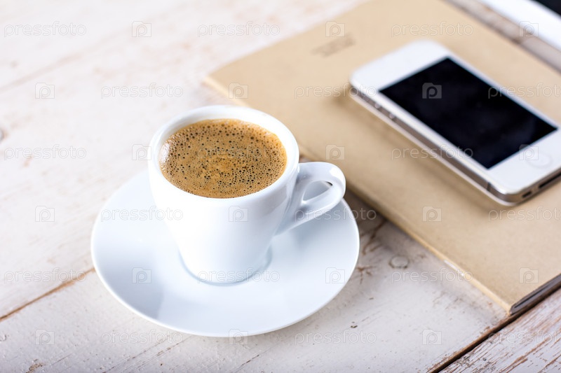 Смартфон и чашечка кофе
