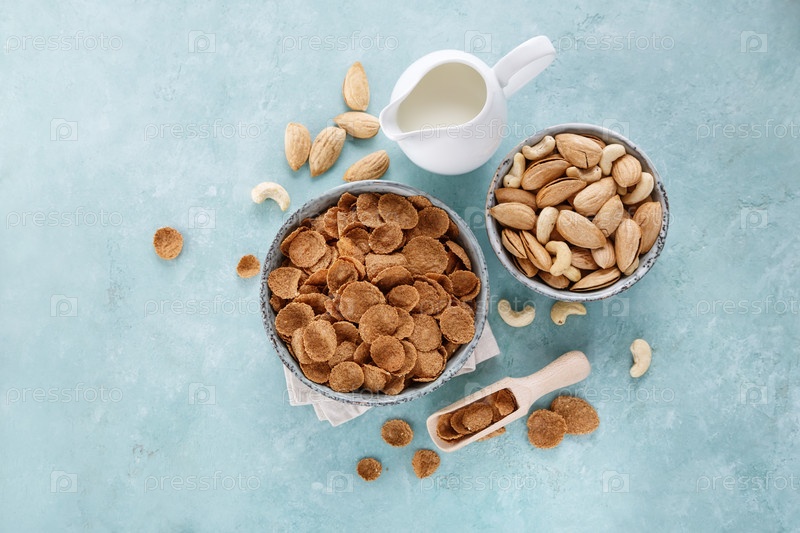 Чаша с кукурузными хлопьями и орехи