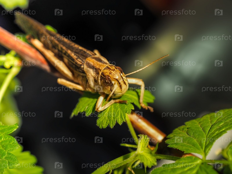 Саранча на зеленом листе