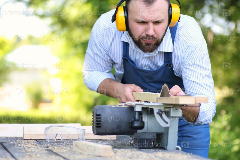 Мужчина с циркулярной пилой