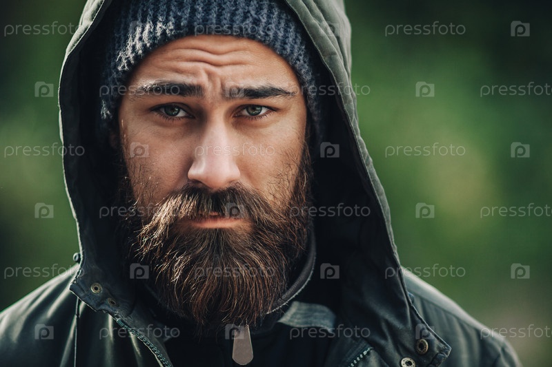 Портрет красивого мужчины с темной бородой