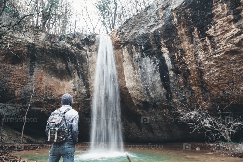 Мужчина у водопада