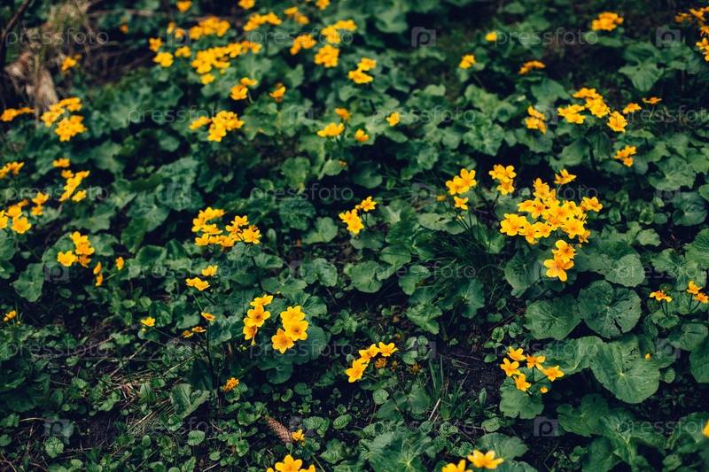 Желтые цветы на темно-зеленом фоне