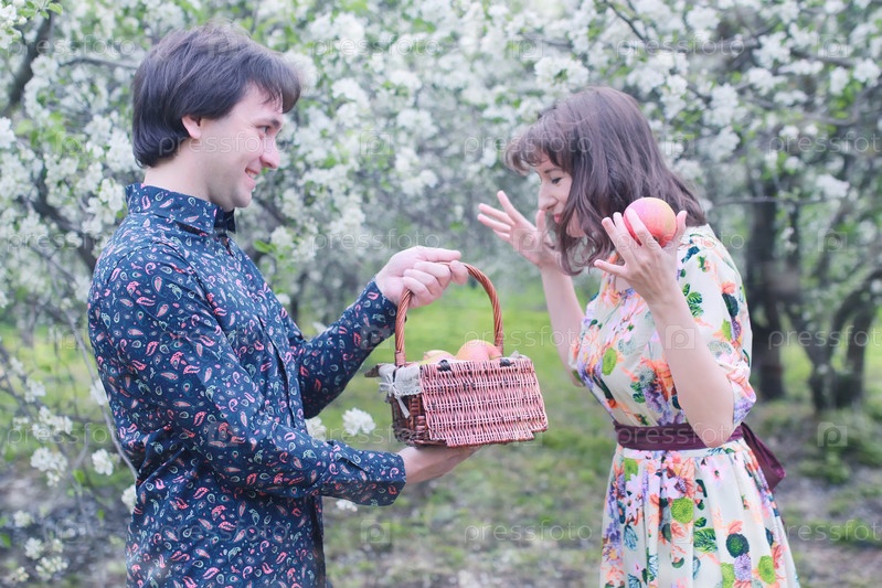 Пара в яблоневом саду