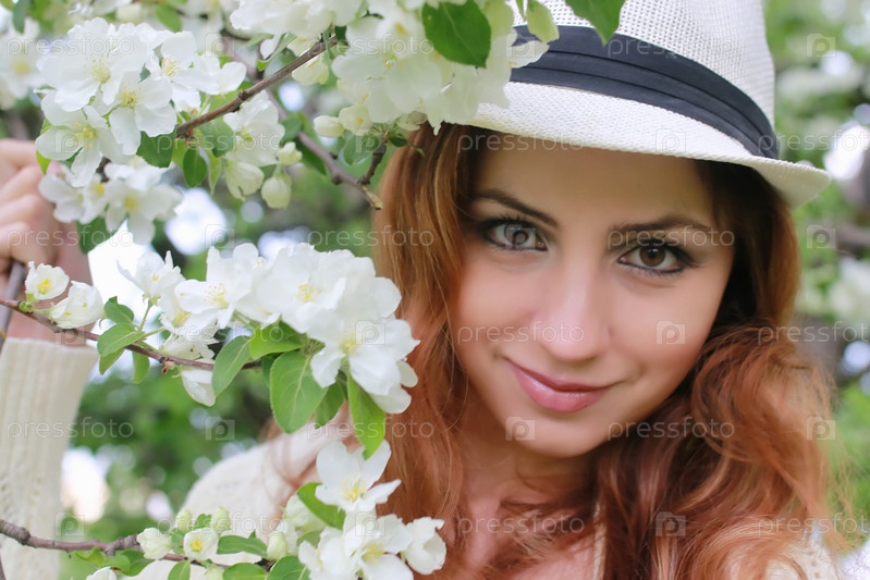 Девушка в саду яблонь