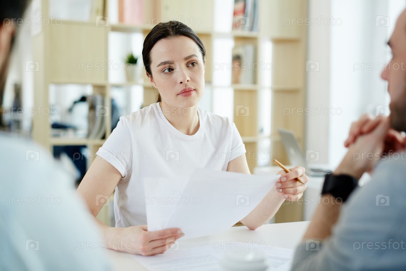 Молодая женщина на встрече с клиентами
