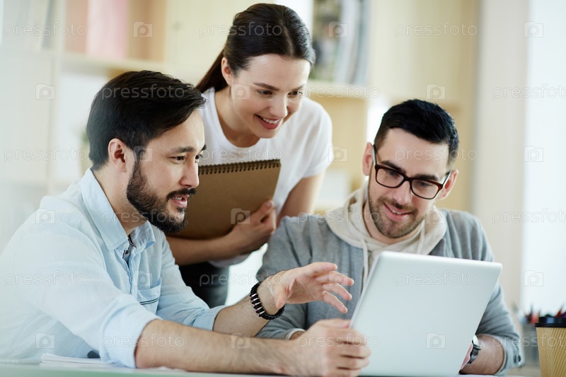 Улыбающиеся люди с ноутбуком
