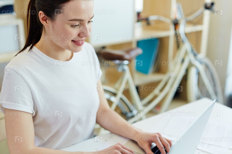 Современная молодая женщина, работающая с ноутбуком